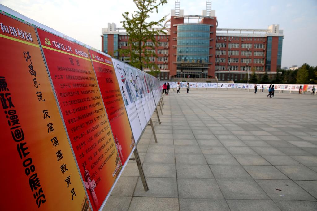 10月13日,由校纪委主办的我校廉政漫画展览在弘毅广场开展。当天下午,校党委副书记、院长赵继红,党委副书记马超,副院长赵正风、崔斌、黄怡俐,纪委书记罗凤英,工会主席杜志傲等前往参观。