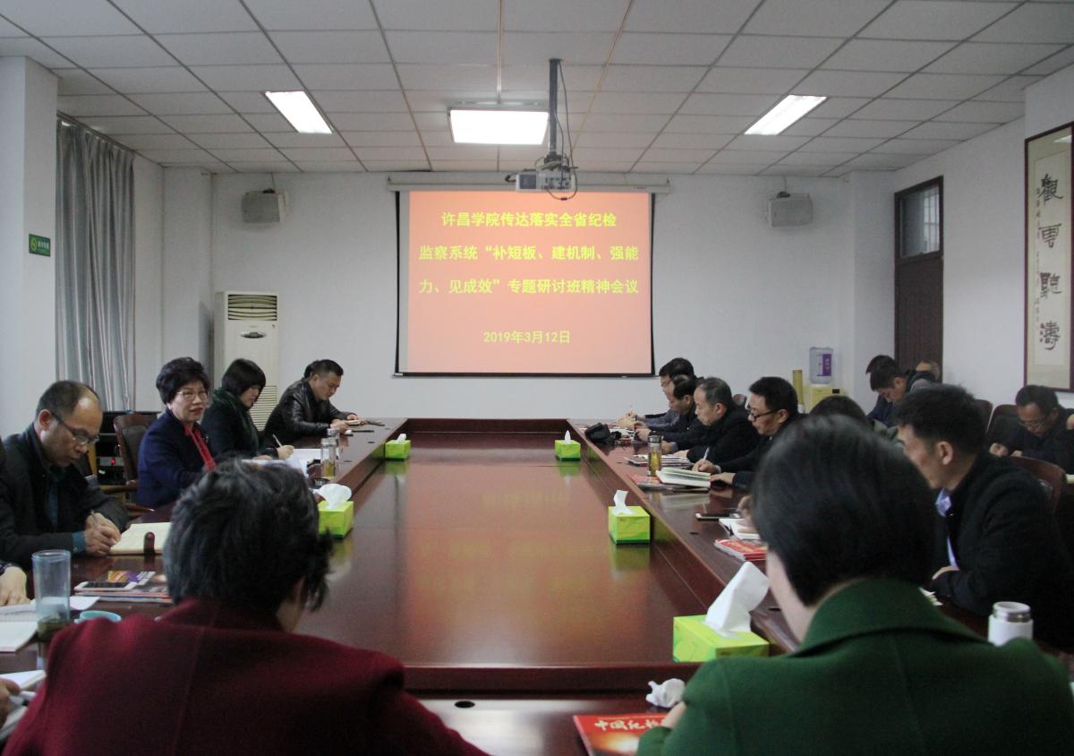 3月12日下午,我校在办公楼第一会议室组织开展纪检监察干部专题学习,校纪委委员、各基层党组织纪检委员近40人集中学习贯彻全省纪检监察系统“补短板、建机制、强能力、见成效”专题研讨班精神。