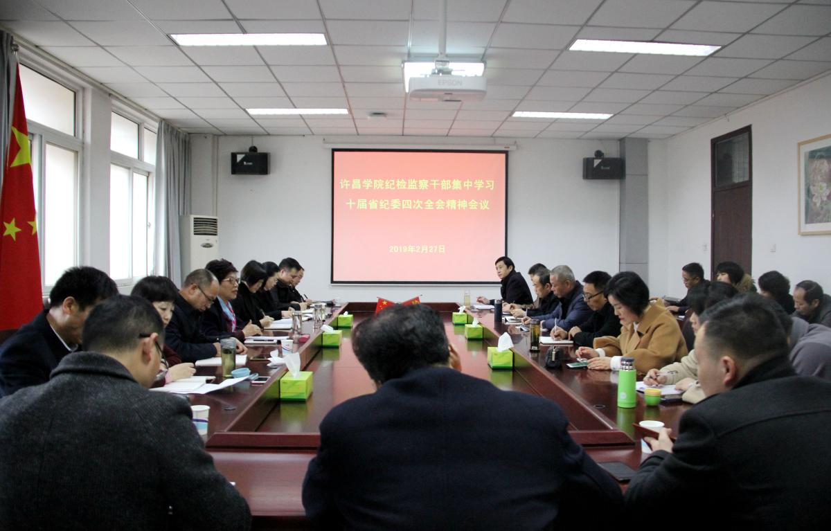 2月27日下午,我校在办公楼第四会议室召开纪检监察干部工作会议,校纪委委员、各基层党组织纪检委员近40人集中学习贯彻十届省纪委四次全会精神。