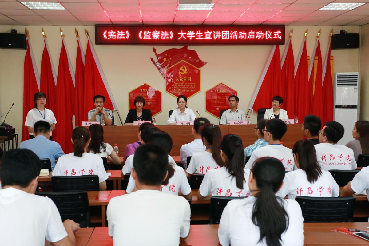 7月10日,许昌学院与许昌市纪委监察委共同举办以宪法和监察法宣讲为主题的许昌学院“许院风采法领青春”大学生宣讲团活动。
