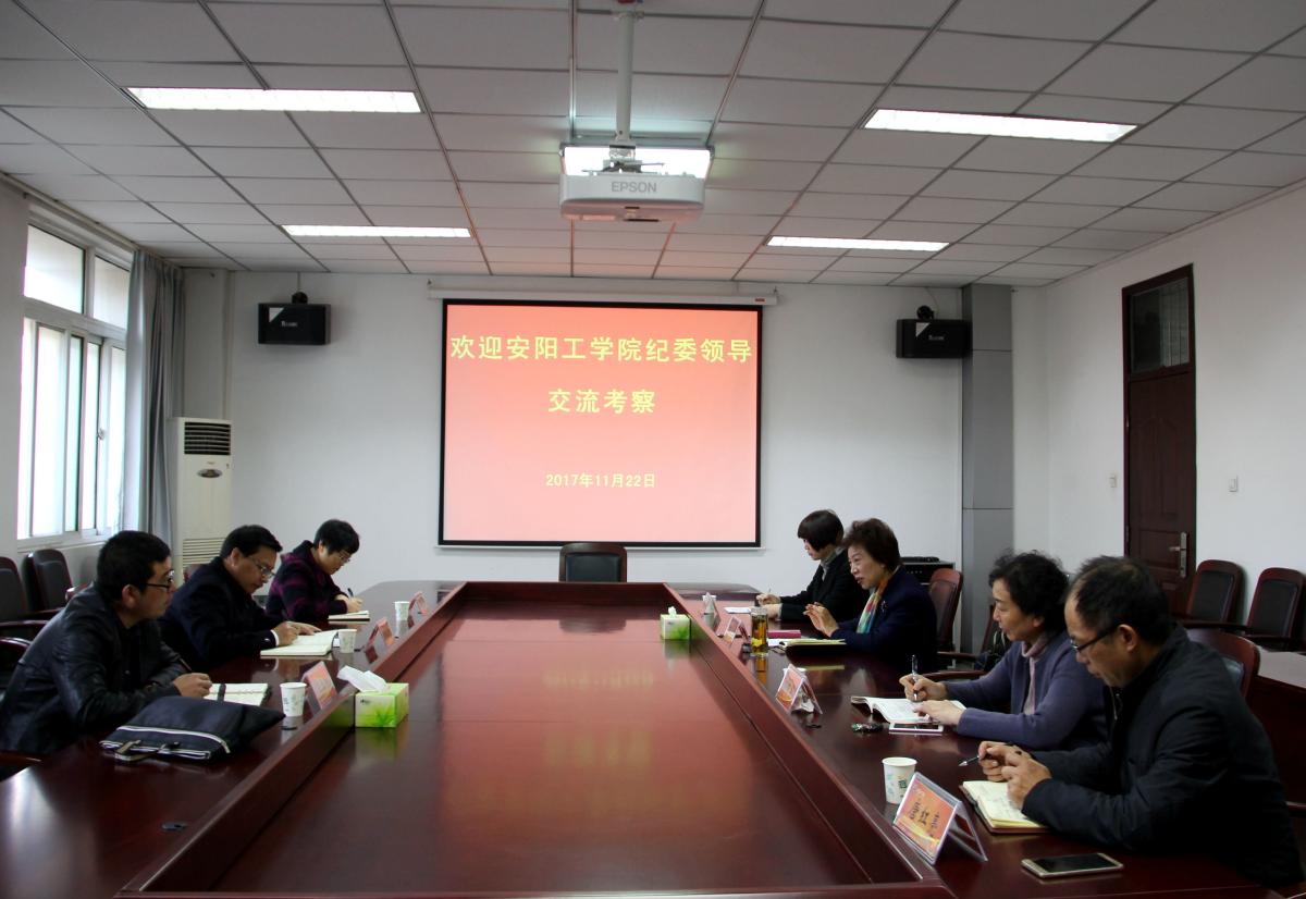 11月22日,安阳工学院纪委书记何瑞强、纪检干部路春霞、崔玉华一行3人到校考察交流工作。校纪委书记罗凤英和纪委、监察处相关负责人与来访客人在办公楼第四会议室进行了座谈交流。双方就围绕“三转”开展的制度建设和做法、监督执纪“四种形态”的实践和经验、基层纪检委员工作实效性提高等方面进行了深入交流,并查看了学校廉洁档案样本,实地观看了快要建设完成的谈话室。