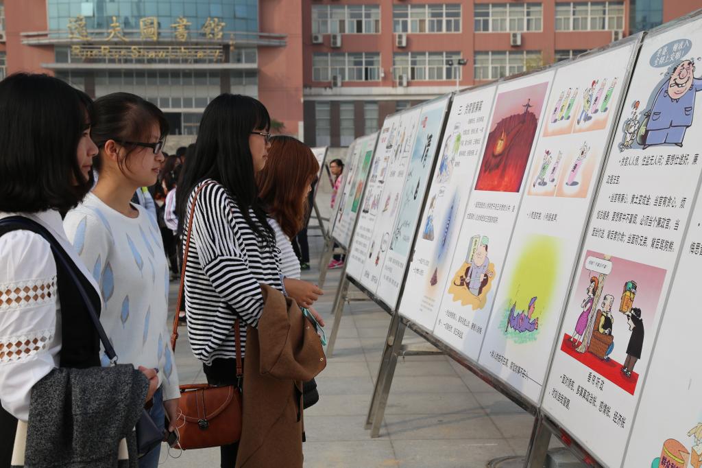 美术学院耿沛甲老师看完展览后说:“这种形式更触动人心,漫画简单直观,通俗易懂,许多画面过目不忘,现在仍印在我的脑海中。”该院张素君老师说,“展览图文并茂、诙谐幽默,在艺术熏陶中得到启示,在思想共鸣中获得教益。”