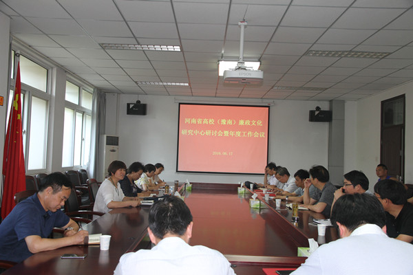 6月17日下午,河南省高校(豫南)廉政文化研究中心研讨会暨年度工作会议在我校办公楼第四会议室召开。校纪委书记、廉政文化研究中心主任罗凤英出席会议,研究中心研究员、特邀教师等30余人参会。会议由法政学院院长、研究中心副主任崔秀花主持。