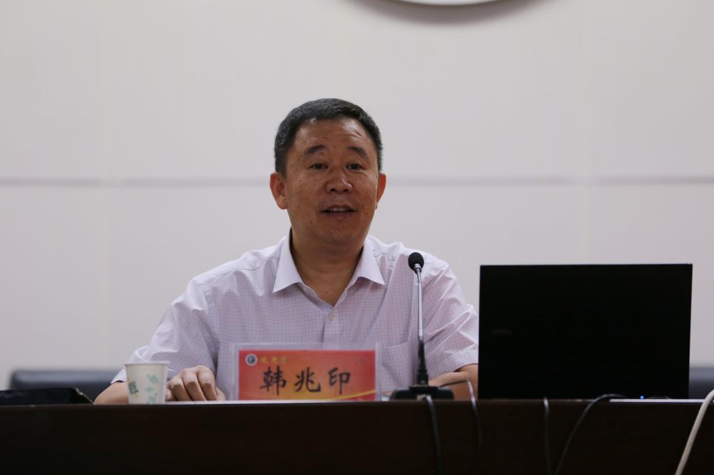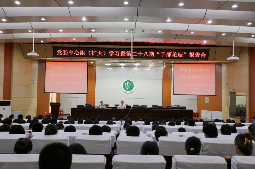 6月27日上午,我校在学术报告厅举行党委中心组(扩大)学习暨第二十八期干部论坛报告会,省纪委常委韩兆印应邀作党风廉政建设专题报告。校领导赵继红、马超、孙海、罗凤英、赵正风、郑直、崔斌、黄怡俐、郭涛、杜志傲出席报告会,全校科级以上干部及教职工党员代表360余人参加了报告会。报告会由党委副书记、院长赵继红主持。